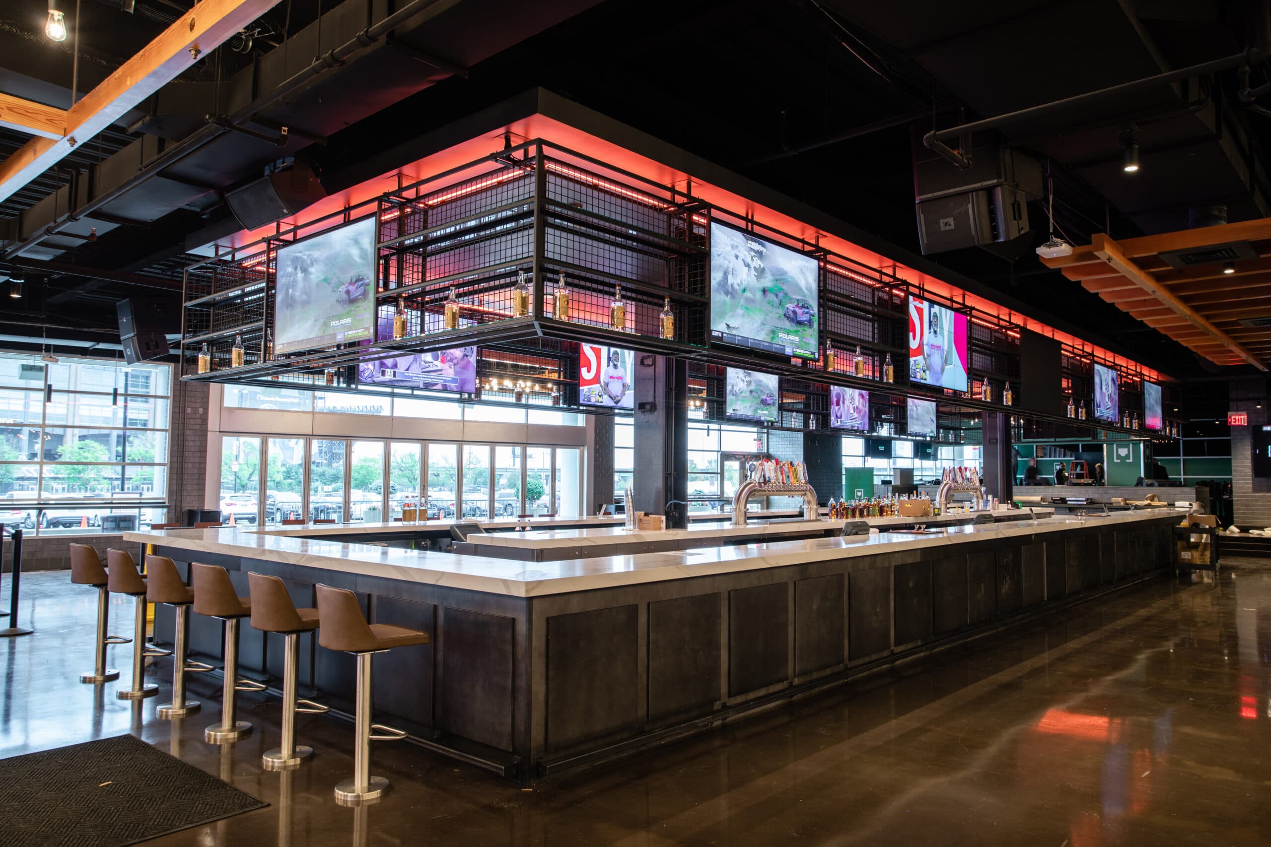 Not a single aspect of the Mezzanine Level’s original layout was left untouched. Accommodating approximately 40 percent of the arena’s total capacity, the Mezzanine features new and expanded food and beverage options, concourse layouts with skyline views, and over 150 new LED game-action screens.